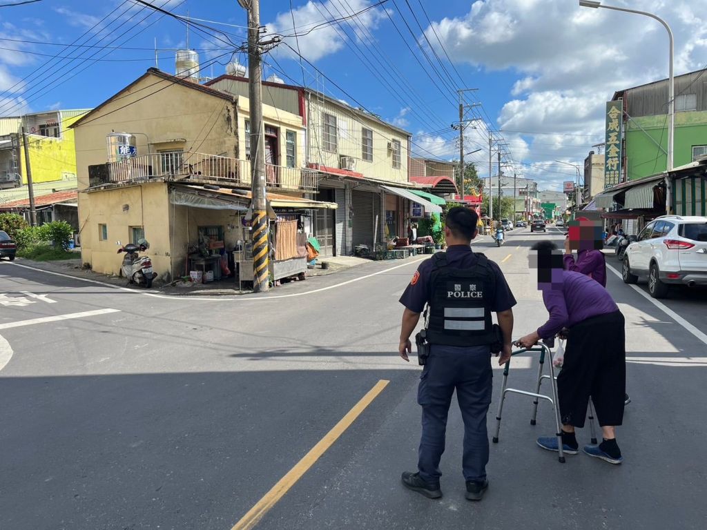 屏東縣政府警察局里港分局鹽埔分駐所所長王承修、警員孫建明於日前下午巡邏經過鹽埔鄉光復路段,見一高齡長者拄著助行器站在路中遲遲沒有動作,便主動上前關心。阿嬤表示欲過馬路購買日用品,但腳部無力、來往車輛眾多,無法等到空檔過馬路,警方遂陪同在旁協助管制車輛,先行讓老婦人安全通過,再行恢復交通順暢。