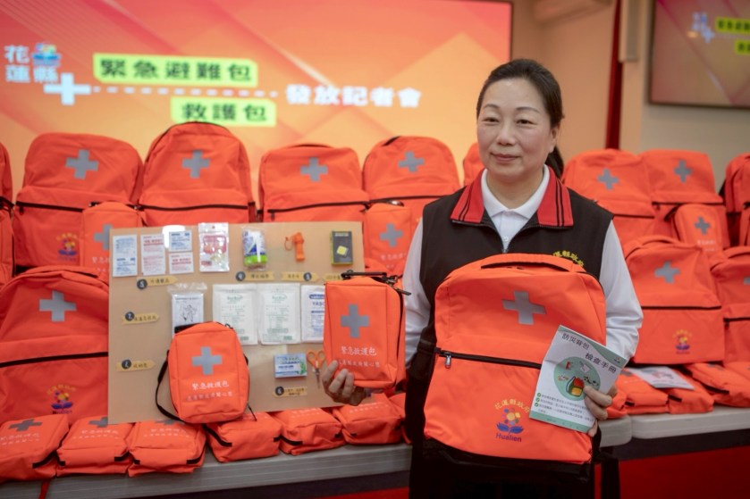 為強化花蓮縣鄉親面對災害處置的應變能力,並落實防災準備的普及化,花蓮縣長徐榛蔚今(19)日於縣府大禮堂舉辦「緊急避難包及救護包發放記者會」,宣布正式啟動全縣避難包與救護包發放作業。即日起由村里鄰長以一戶一組發送,籲請鄉親持續關注資訊,共同攜手備災、強化防護。