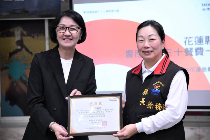 縣長徐榛蔚表示,花蓮縣政府往年是唯一地方政府以實際行動支持世界展望會、響應飢餓三十活動,今年縣府更走進高中端,讓孩子們都能認識世界展望會,珍惜所擁有的,並知恩、感恩。感謝展望會長年在地深耕,也感謝所有願意付出一日餐費的同仁們,因為你們,許多家庭和孩子將不再孤單。她也強調,花蓮縣府未來將持續結合社會資源與公益夥伴,推動在地照顧、家庭支持與兒少關懷等服務,落實「從地方出發,回應世界需要」的行動信念。