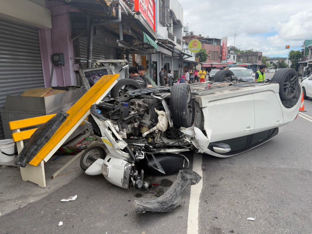 經瞭解係民眾王男(年約50歲)駕駛自小客車沿中興路6段外側車道北向南往知本方向直行,因不明原因自撞路旁民宅、招牌及機車。駕駛意識清醒,僅受輕微擦挫傷未送醫診治,詳細事故發生原因,刻由臺東交通小隊調查釐清中。