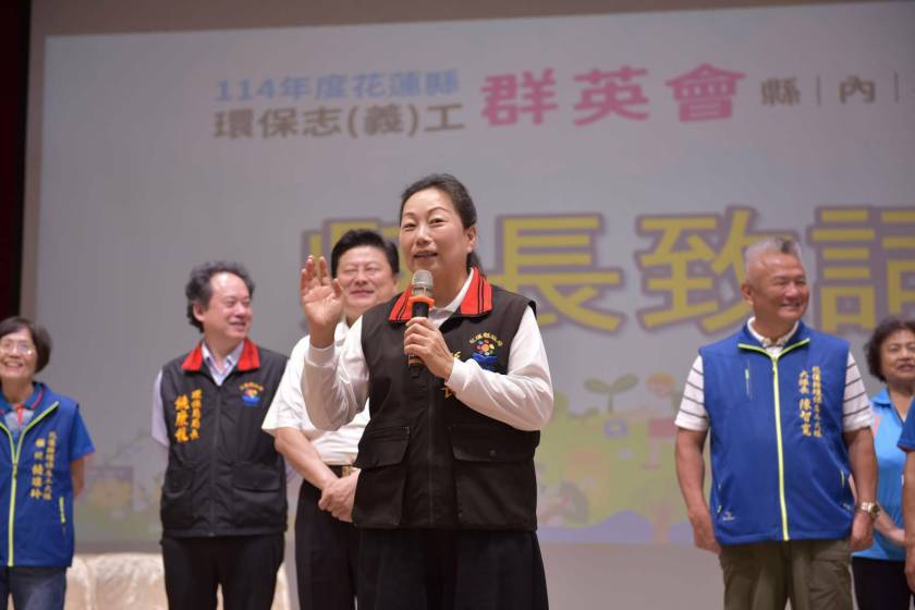 花蓮縣環境保護局今(21)日於花蓮市中華國小學生活動中心盛大舉辦「114年花蓮縣環保志(義)工群英會」,縣長徐榛蔚在立法委員傅崐萁及環保局長饒慶龍陪同下出席盛會,競賽活動兼具知識性與趣味性,參賽者全神貫注、展現團隊合作默契,千人共襄盛舉,現場氣氛熱烈歡騰。