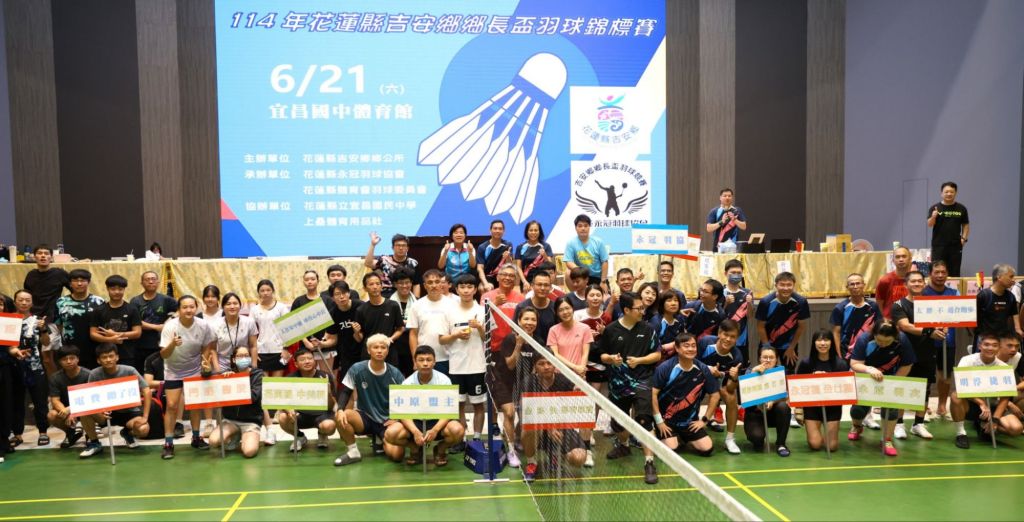 114年吉安鄉「鄉長盃」羽球錦標賽於6月21日在宜昌國中體育館盛大舉行,無分學生或樂齡選手、橫跨各行各業的羽球愛好者踴躍參加,依社會組與樂活組別在球場競技,場面熱烈。鄉長游淑貞親臨賽事現場,與選手們熱情互動,並在開球儀式中與永冠羽球協會理事長游晁岳銀、花蓮縣體育會羽球委員會主委吳忠傑一同為比賽揭開序幕。游淑貞表示,非常感謝羽球協會與羽球委員會每年投入資源辦理「鄉長盃」賽事,不僅讓選手有機會互相切磋球技,更促進社區間的運動交流與友誼,許多球隊年年報名、成為賽場上的熟面孔,展現出吉安羽球社群的凝聚力與活力。