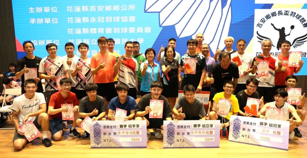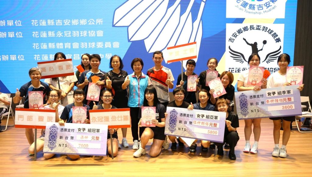 此次各組優勝隊伍如下,社會一般女子組:第一名為「永冠獵金女團」、第二名「芊成工程」、第三名「門諾醫院」、第四名「撕心裂肺」;社會一般男子組由「中原盟主」拿下第一、「明淳捷羽」獲得第二、「美羽之光」第三、「電費繳了沒」第四;樂活組方面,第一名為「嗚哇哇~嗚哇~」、第二名「花崗國中美羽」、第三名「永冠羽衣」、第四名「永冠羽鞋」。游淑貞表示,未來鄉公所將持續與地方體育團體合作,提供更多競賽與運動參與機會,期盼全民都能享受運動、健康與快樂,打造活力十足、適性宜居的吉安鄉城。