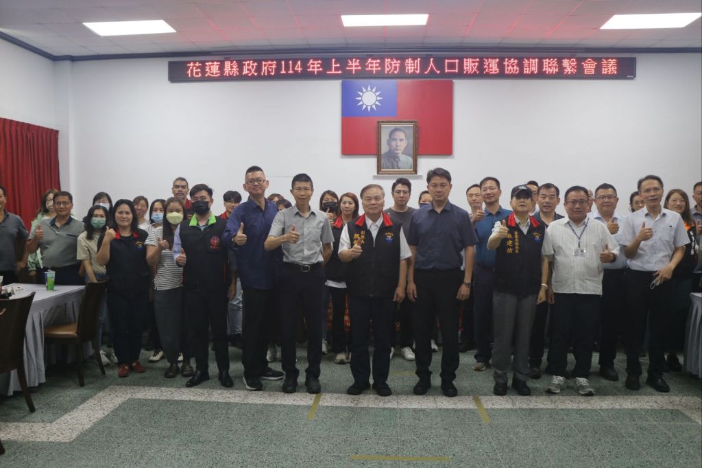 花蓮縣政府114年6月25日(星期三)於警察局召開「防制人口販運協調聯繫會議」,由縣長徐榛蔚主持,花蓮地檢署主任檢察官顏伯融蒞臨指導,配合中央針對防制人口販運項目之「追訴、預防、夥伴、保護」等四大面向議題,由縣警局外事科擔任秘書單位,與縣府社會處、衛生局、教育處、農業處、觀光處、行政暨研考處、原住民行政處、移民署花蓮縣服務站、專勤隊、海巡單位及NGO非政府組織等共31個公、私相關單位進行交流研討,有效落實橫向聯繫及合作網絡之互動。
