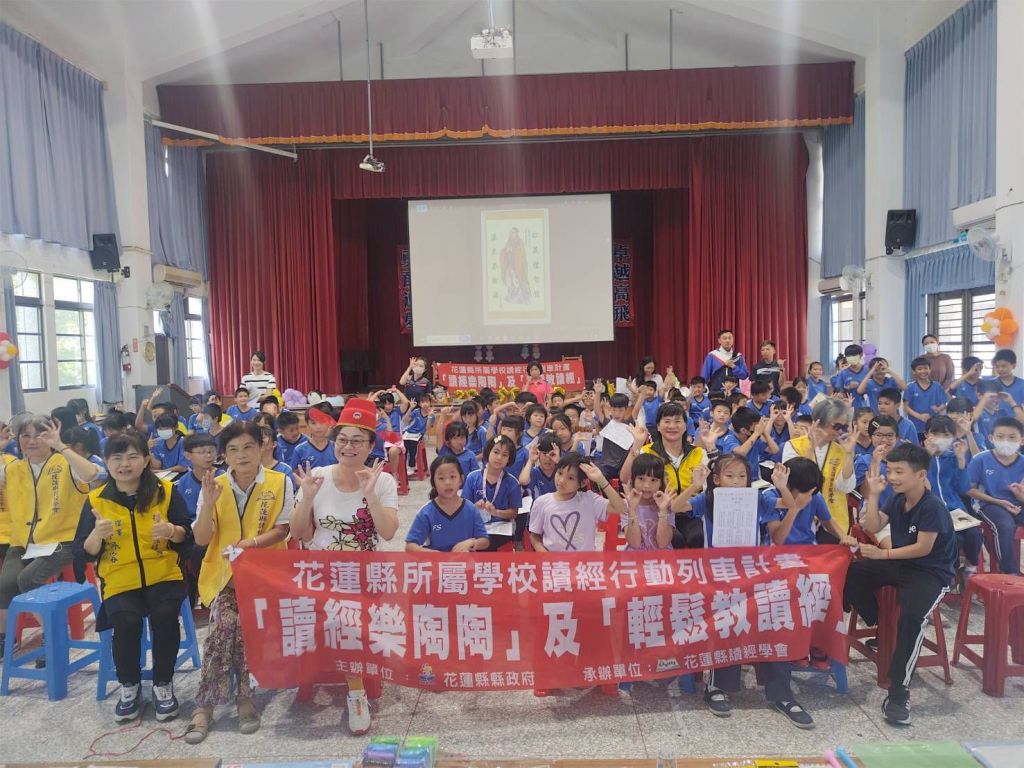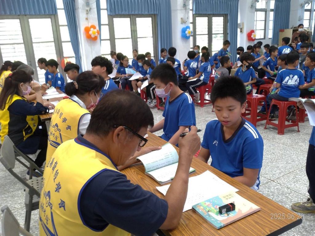 壽豐鄉豐山國小6月26日舉辦113學年下學期讀經闖關活動,邀請花蓮縣讀經教育協會讀經老師擔任關主,一至五年級學生熱情參與,活動中各年段有不同的進度,透過背讀經文闖關換獎品的方式,學生們踴躍參與,全場互動充滿書香味。