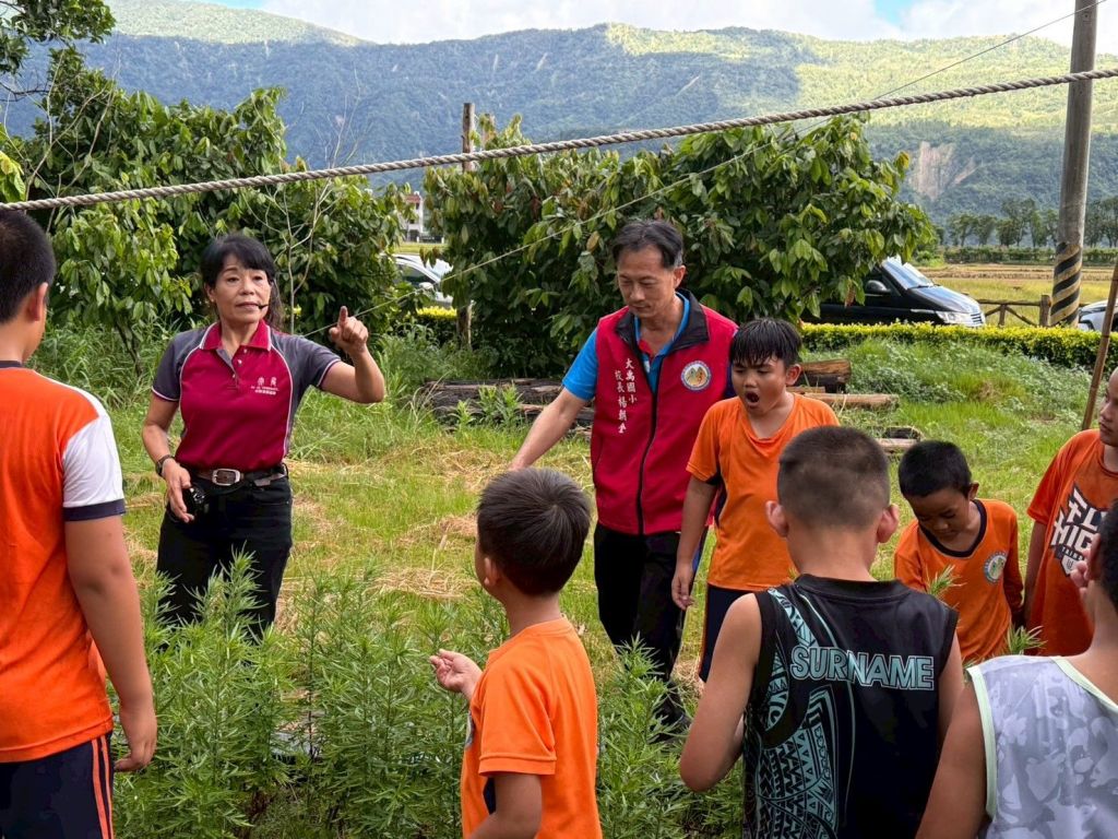 緊接著,學生們來到學校旁剛落成的打魯岸(Taluan),參加由社區發展協會總幹事向薇幫師生上的植物課程。透過觸摸葉片、嗅聞香氣,孩子們認識了多種在地藥草與香草,拓展對植物的興趣與應用知識。活動尾聲,並由大禹家政班精心製作的道地仙草冰讓師生品嚐,滑順清涼的口感在炎炎夏日中為師生們讚不絕口,也為這場深具文化與自然底蘊的學習旅程畫下最美的句點。