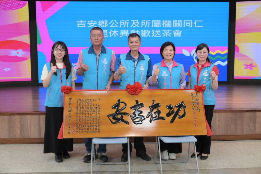 歡送餐會現場,彼此間的情誼在滿懷不捨的笑語與祝福掌聲中真摯流動,吉安鄉公所全體同仁共同祝福榮退與榮調的夥伴們在人生的新旅途中健康平安、事事順遂,更期待未來在不同舞台再次重逢。游淑貞也誠摯表示感謝,吉安鄉的成就來自每一位同仁在平凡崗位上的堅守與奉獻,這些點點滴滴才能堆疊起如今的繽紛吉安。