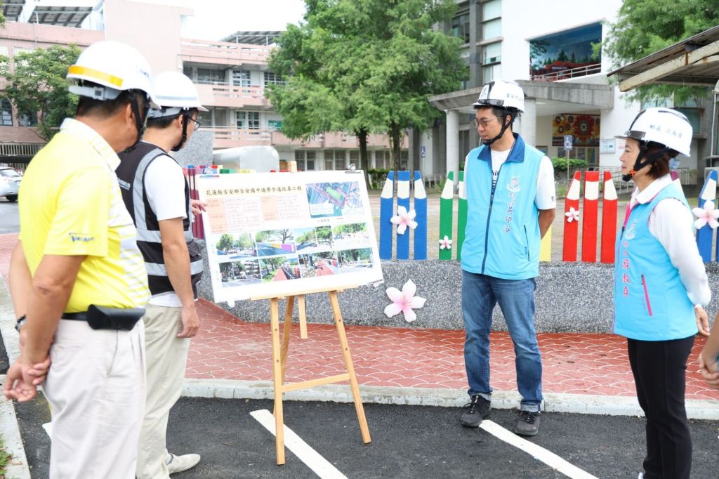 吉安鄉公所為維護通勤學生安全及行人權益,戮力改善校園周邊道路交通安全,爭取交通部補助1420萬餘元,並獲得鄉代會支持自籌配合款270萬餘元,進行吉安國中通學步道改造工程進行,自113年12月15日開工將於114年7月竣工,過程品質嚴格把關,不僅完成新設的301米實體型人行道與74米標線型人行道舒適完善、造型圍牆308米美輪美奐,還有相關路燈、交通號誌設施,整體提升周邊環境品質。7月9日上午鄉長游淑貞偕建設課相關人員現場檢視完工品質,近日將完成驗收並啟用人行步道,帶給學子與家長、高齡長者行經校園安心守護。