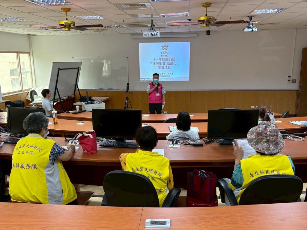 為落實行政院「國家廉政建設行動方案」具體策略及法務部廉政署將廉潔意識向下扎根理念,臺北榮民總醫院玉里分院於7月8日(星期二)假醫院研究大樓針對實習醫師、心理科實習學生及志工人員,舉辦114年校園誠信「擁廉拒貪.我最行」反貪宣導活動。