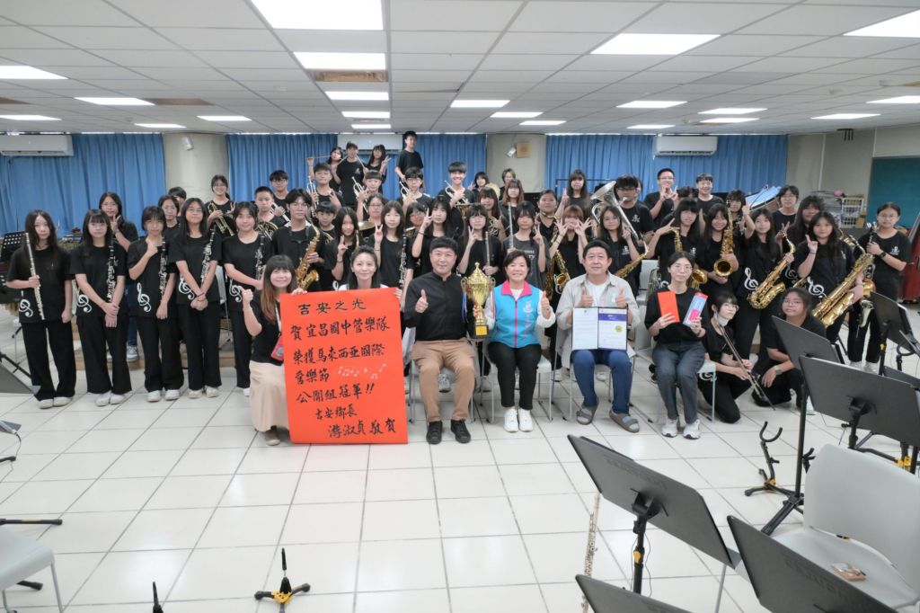 吉安鄉長游淑貞重視學子多元藝能興趣發展,經常到學校關心教學、鼓勵孩子們不斷精進專業技能,近日鄉內各級學校接連傳捷報,其中宜昌國中管樂團於6月間啟程前往馬來西亞,參加國際管樂節比賽暨國際教育交流活動,展現國際教育量能與文化傳承,勇奪公開組冠軍耀眼成績!鄉長游淑貞親自到宜昌國中貼紅榜,並致贈小禮物,為孩子們站上國際舞台的精湛表現表示肯定,更欣喜客家文化與優美樂音傳揚海外,讓世界看到家鄉的美好與文化底蘊。