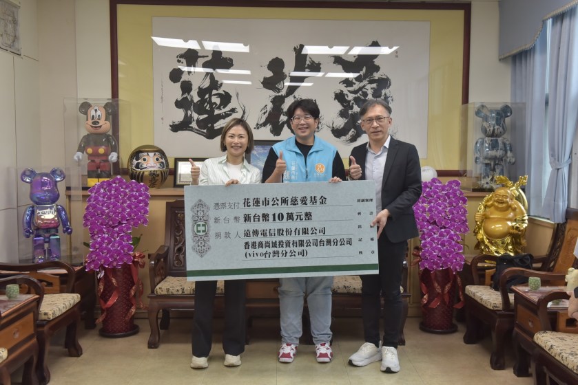 遠傳電信股份有限公司今(10)日再次展現企業社會責任與在地關懷精神,攜手手機品牌vivo共同捐贈新台幣10萬元予花蓮市慈愛基金,支持弱勢族群關懷與急難救助工作。