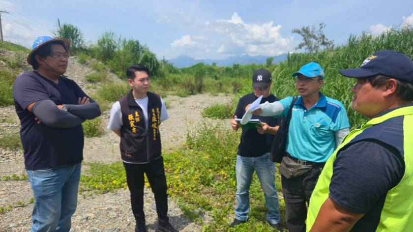張峻議長於今(17)日下午邀集經濟部水利署第九河川分署工程司盧勵成、農業部農田水利署花蓮管理處玉里工作站站長林錦盛、縣府建設處水利科技士劉鈞銘、卓溪鄉公所建設課周君慶、鄉民代表邱秀英及多位當地農民,共同前往玉樹橋和古風橋下游現場會勘,實際了解問題嚴重程度。張峻議長服務處主任張宸瑋與秘書高傑心亦陪同出席。