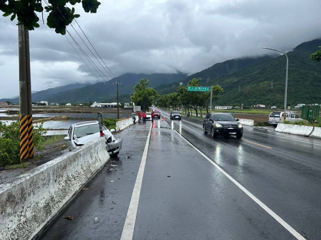 於今(18)日14時25分許,來自桃園的胡男(65年次),駕駛自小客車由南往北行駛,行經池上大橋南端時,疑因身體不適,自撞路旁水泥護欄,造成車頭受損,連同自身及車內4人乘客(妻子張女、72年次與3名小孩分別為110、113及115年次)受到擦挫傷,所幸均意識清楚,經送關山慈濟醫院診療後均無大礙。以上事故,胡男經酒測,數值為零。並領有合格駕照。全案由臺東縣警察局關山分局交通小隊測繪處理,以釐清事故發生原因。