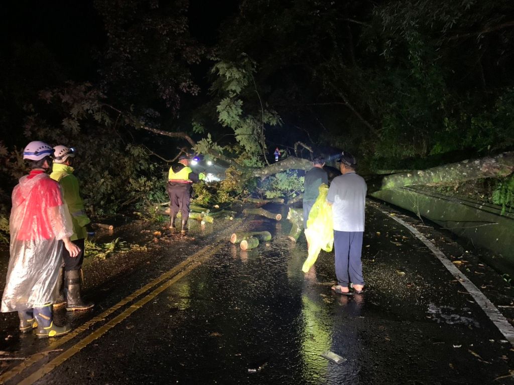 近日因受颱風外圍環流影響宜蘭山區連日下雨,導致宜51線2公里處邊坡上路樹倒榻,阻斷通往大同鄉樂水等部落主要通行道路,往來車輛均無法通行,用路人見狀報警處理 。