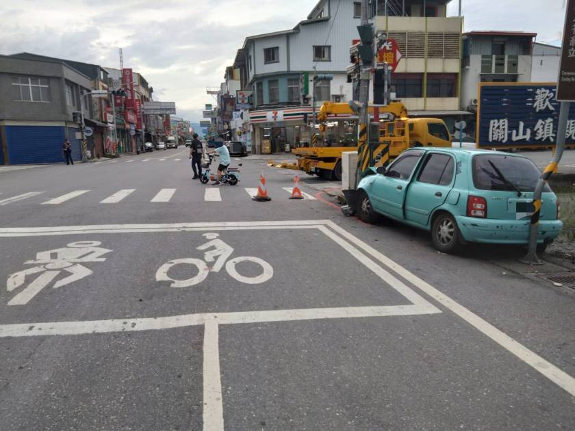 關山聯合所於昨(28)日13時53分,接獲119轉報稱「臺東縣關山鎮和平路1-4號有車禍事故,車內駕駛一人受傷,但意識清楚,請派員前來處理」,關山聯合所及交通小隊員警隨即趕赴現場處理。據悉,駕駛人為40年次的黃姓婦人,當時由南往北行駛於臺9線,行至民族路與和平路口時,自撞此路口燈控號誌箱,事故造成黃女頭臉部多處出血,雖有受傷但意識清楚,由關山消防分隊人員緊急送往臺東馬偕醫院救治。後經實施酒測,其結果為零,且持有合格駕照,初步排除酒駕因素。惟此事故造成此路口號誌失效,為避免交通混亂,員警立即於現場實施交通指揮疏導,並通知號誌維修單位儘速到場搶修,直至18時許號誌系統恢復正常運作後,員警始離開現場。此起交通事故發生原因,續由關山警分局交通小隊進一步調查釐清中。