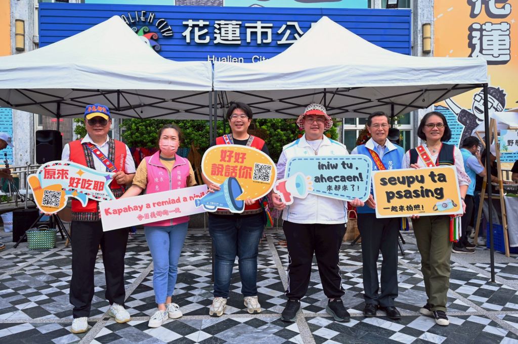 此次市集邀集多家來自花蓮在地原住民特色美食攤商,展售各式傳統與創新並陳的料理,現場充滿濃厚的族群文化氣息。花蓮市長魏嘉彥也親自到場與市民同樂,並熱情參與由原住民行政課設計的「族語闖關遊戲」,學習族語與野菜名稱,展現對原住民語言傳承的重視與支持。