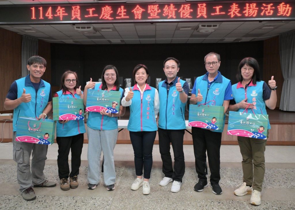此次受表揚的績優員工中,社會課蘇沛緹在低收入戶、中低收入老人等社福業務推動上表現卓著,連年獲得衛福部肯定,113年度更榮獲第一組第一名,開戶率高達98.4%;清潔隊陳裔璿擔任行政業務,協助推動隊務及各類案件處理,配合衛生局推動「無菸健康職場」獲全縣第一名,並於執行減重計畫中展現關懷與團隊凝聚力;高智善則負責全鄉排水溝清淤與各項臨時勤務,工作範圍廣泛且責任重大,始終盡心盡力;李美玉長期投入資源回收分類工作,尤其春節與連假期間面對大量垃圾與回收物,總主動協助同仁分擔壓力,展現高度團隊精神;殯葬所呂志祥熟稔業務,近期完成植葬區翻土、火化場緊急發電機組與防水油槽工程等多項計畫申請,亦榮獲洄瀾透明機關組優等獎。活動中,蘇沛緹驚喜表示,盡心執行公務本是職責所在,沒想到獲得鄉長親自嘉許,而且和這麼多壽星家人們一起唱生日歌,這也為她多年公職生涯留下溫馨回憶,相信同仁們的祝福將是大家未來勤務奮進努力的溫暖動能。