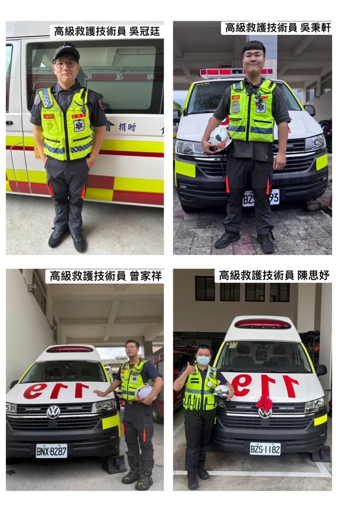 花蓮縣消防局救護團隊再創佳績!共有4名優秀救護人員榮獲內政部消防署113年度績優救護人員表揚,分別為自強分隊吳秉軒、吳冠廷、曾家祥及花蓮分隊陳思妤,展現花蓮縣在緊急救護領域的卓越實力與專業水準。