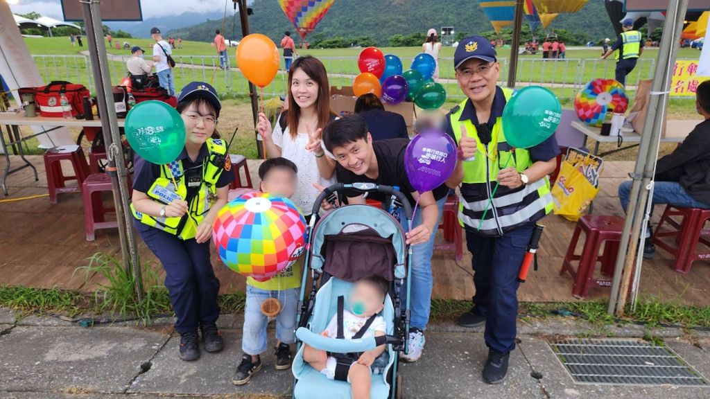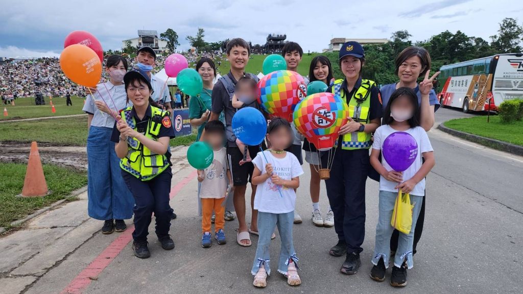 此場音樂會卡司堅強,邀請到天團「告五人」、療癒系歌手郭靜熱情開唱,並結合無人機展演與絢爛煙火秀,為臺東夏夜增添璀璨。活動進行中雖突遇天氣驟變,被迫中斷並收球,但雨勢稍歇後,光雕演出與藝人表演仍順利進行,讓眾多遊客在雨後的夜空下,感受滿滿的浪漫與感動。面對突發狀況,關山警分局提前部署警力,除在各重要路口執行交通疏導,維護會場內外秩序,並與現場工作人員緊密合作,適時引導人車進退場。分局長鍾國楨也親赴第一線指揮調度,確保整體活動安全無虞,過程中無重大事故發生,展現高度警政效率與服務熱誠。除維安疏導外,分局也善用活動人潮設置宣講攤位,由「識詐交安宣講團」出動,以有獎徵答與民眾互動,寓教於樂進行反詐騙及交通安全宣導。警方向現場大小朋友贈送印有「路口慢看停」與「防詐三步驟─1聽2掛3查證」的小氣球,不僅吸睛吸粉,更讓每位手拿氣球的民眾成為「行動宣導大使」,有效延伸宣導觸角。