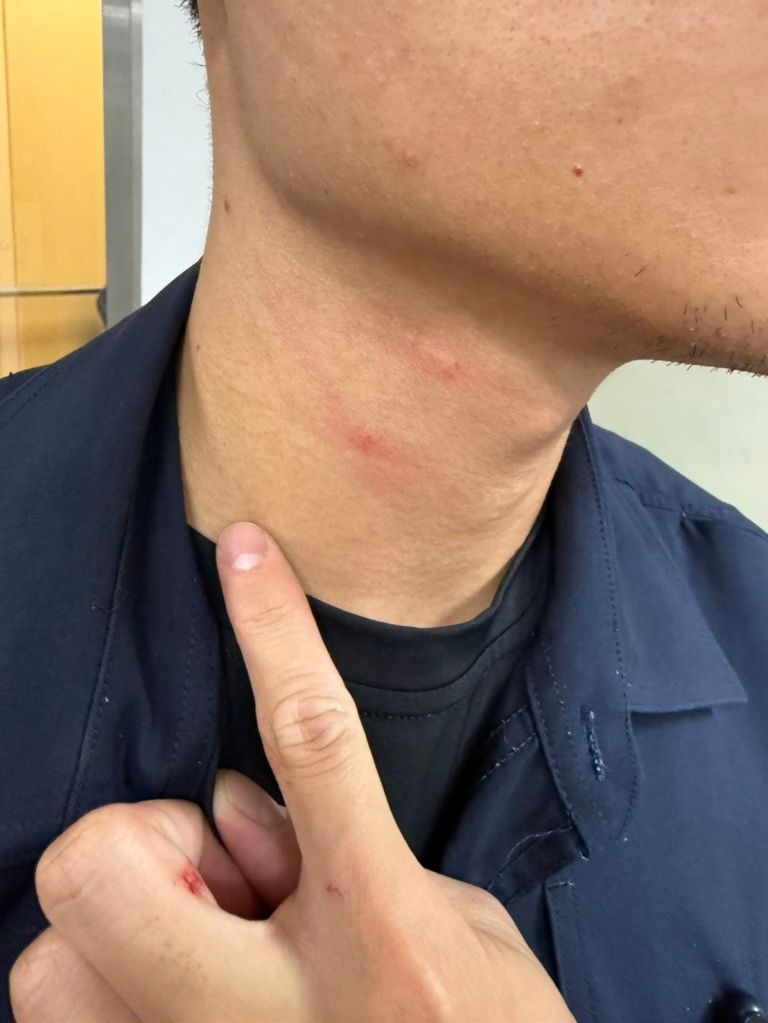 屏東縣政府警察局里港分局大平派出所員警於114年8月5日15時許行經里港鄉過江路、堤防路口,發現謝男(47歲)騎乘普重機右轉未打方向燈予以攔查,由於謝嫌身上散發濃厚酒氣,員警預備實施酒測時,謝嫌突對員警揮拳攻擊,導致員警右側脖子及左手中指處有明顯紅腫擦挫傷,現場經員警施以強制力依法逮捕,逮捕過程中有2名熱心民眾協助安撫及報案,謝嫌經酒測酒測值超標,全案依公共危險、妨害公務移送臺灣屏東地方檢察署偵辦。