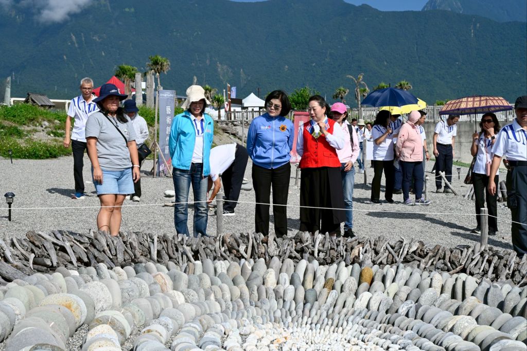 徐縣長指出,花蓮就是天然的美術館、展覽館。徐縣長熱情導覽七星潭疊石藝術季,透過石頭的排列與自然語彙的交融,展現出花蓮縣由土地長出的藝術,每一件作品皆述說著大地與創作者的對話,藝術季自5月中旬開展以來,吸引無數國內外藝術創作者與遊客熱情參與,充分展現花蓮豐富的自然與人文魅力。