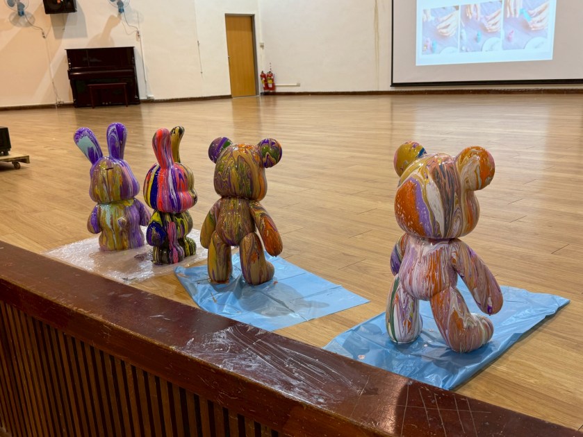 「我們希望藉由這類創意美術活動,激發住民的內在動機與參與意願,讓他們在創作過程中感受到成就感,進一步建立自信與正向情緒。」職能治療師蘇育瑜表示,此次活動主軸為「流體熊」——透過顏料的自由流動與碰撞,讓學員在視覺與觸覺的雙重刺激下,發揮創意,創作屬於自己獨一無二的熊公仔。