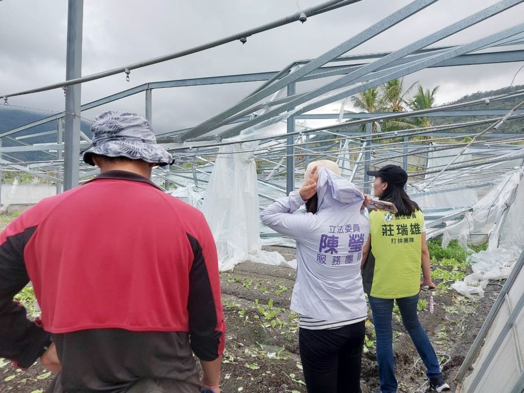 楊柳颱風昨(13)日過境,造成台東農業損失慘重。立委陳瑩、莊瑞雄第一時間邀集農業部長陳駿季,討論受損農作與農業設施的補助事宜,並強烈要求農業部盡快公告「台東縣農損全品項免勘查」,讓農民能立即申請救助。對此,陳駿季部長正面回應,承諾將朝「全縣全品項」方向處理。