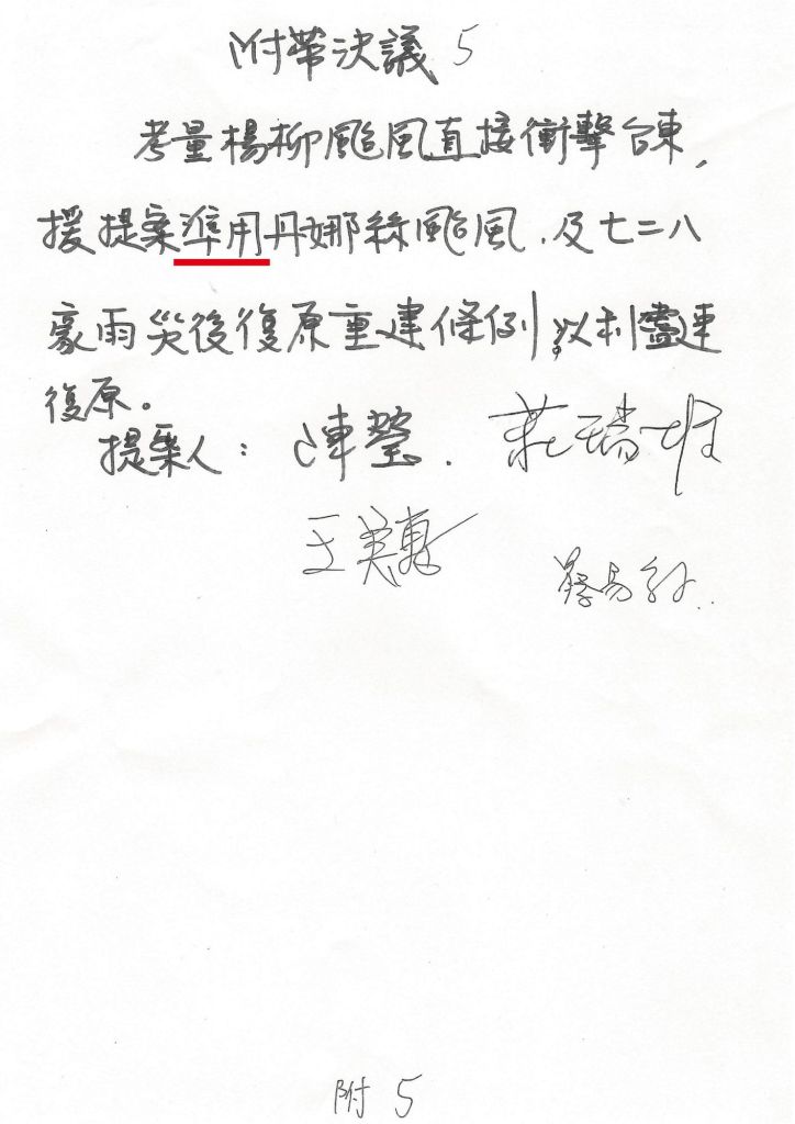 在昨(13)日立法院黨團協商過程中,陳瑩一度提案將《丹娜絲颱風災後復原條例》直接納入「楊柳颱風」名稱,經協商後,改以「附帶決議」方式,一併三讀處理。陳瑩表示,受災地區的農業補助、公共建設及社會復原所需各項經費,對災民而言,援助必須即時,不能等待或拖延,期盼透過法制化的資源挹注,保障台東民眾的生命、財產與生計安全。