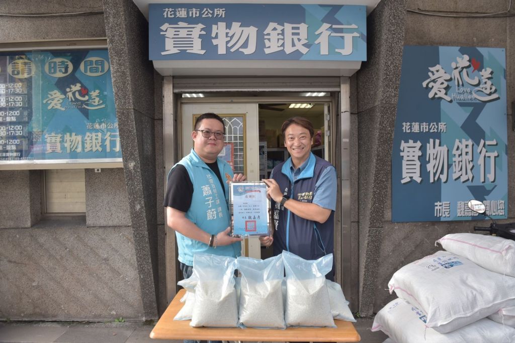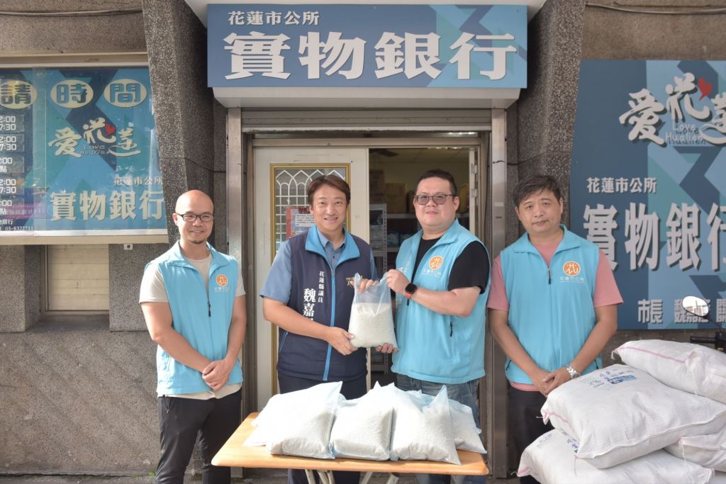 肯定花蓮市公所對弱勢的照顧,住在富里鄉的李春女再次將自家生產的白米共300公斤捐給愛花蓮實物銀行,他請魏嘉賢議員協助代為轉贈,期盼這批白米能幫助到弱勢家庭。花蓮市長魏嘉彥說,過去在魏嘉賢擔任市長時因太平洋緃谷馬拉松與李女士結緣,樂善好施的她多年前就投入公益行列,感謝她肯定愛花蓮實物銀行創辦宗旨,也期盼未來持續支持。