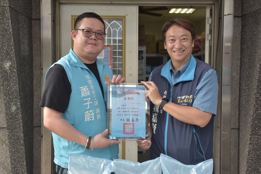 社勞課長蕭子蔚出席頒贈感謝狀,代表魏嘉彥市長感謝李女士再度對花蓮市社福政策的支持,他表示,農民工作靠天吃飯,最怕的就是乾旱或暴雨,要能順利收割每一期的稻作都是運氣,感謝李女士堅持多年的善舉,只為將愛心傳遞給弱勢家庭,相信她的熱情與善念能夠發揮影響力,讓更多社會弱勢受到眷顧;蕭課長提到,不久前也有一間默默行善的企業捐贈了26箱共650包的地瓜酥給實物銀行,讓實物銀行的物資更加充實、豐富。