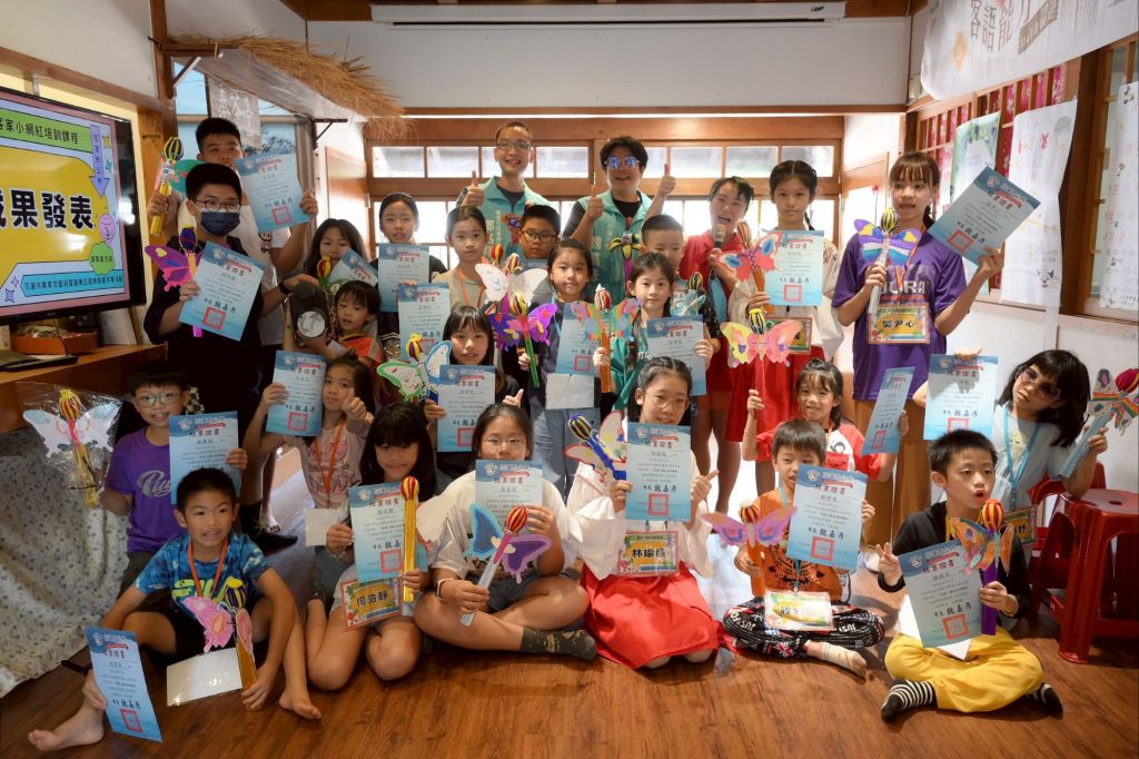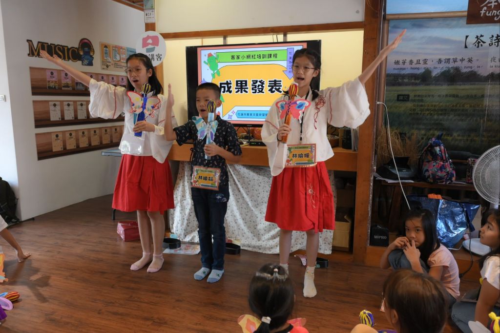 有些孩子雖在五日前幾乎沒接觸過客語,但經過密集又有趣的課程洗禮,他們已經能自信地站上台,用自己做的專屬麥克風,用客語介紹在地的美食和特色。從一開始的怯生生,到最後能勇敢發表成果,孩子們的成長令人驚喜,也讓現場掌聲不斷。