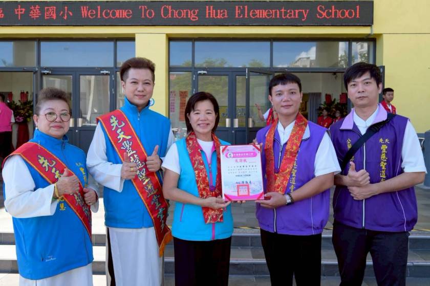 台中豐龍聖道堂與台中蘇玉枝慈善基金會,奉地母娘娘慈悲懿旨,巡迴花蓮十三鄉鎮市關懷低收入戶,於今(17)日在中華國小發放花蓮市960戶物資中,圓滿第十三場共5220戶關懷善行,在鄉長游淑貞、花蓮縣消防局副局長李龍聖及相關人員見證下,由堂主廖淨愷代表捐贈高達498萬全配備救護車「地母5號」一輛,增加北花蓮救災服務量能,同在祈福團拜法會後,加碼捐贈500份生活物資予吉安鄉,為社會弱勢傳遞大愛關懷。廖堂主表示,長期感受鐵人鄉長游淑貞認真服務的熱力,這幾年來每次的捐贈活動或祭祀祈福,游鄉長都會親身陪同參與,因此感受到花蓮濃郁的人情味。台中豐龍聖道堂結合各宮廟愛心捐助花蓮,希望拋磚引玉為社會帶來善愛循環正能量。