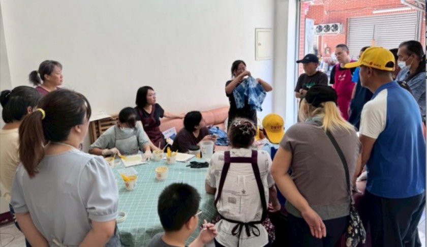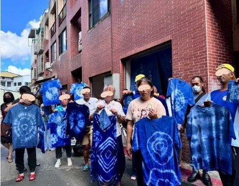活動使用天然靛藍染料,參與者從設計、綁紮到染色,親手打造屬於自己的作品。有人驚呼於色彩的層次變化,有人則分享創作的小巧思,大家彼此交流、互相協助,現場笑聲與驚喜聲不斷。這份過程,不僅讓人們體驗到手作的樂趣,也讓不同身份、不同角色的參與者建立起信任與溫暖的互動。