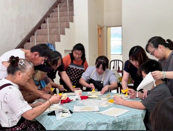 在一方布料上折疊、綁紮、浸染,深邃的靛藍漸次暈開,一幅幅獨一無二的圖樣也悄然成形。8月16日(六)上午,臺北榮民總醫院玉里分院社區家園舉辦「藍染手作休閒活動」,邀請社區民眾、醫師、護理師、個管師與行政人員一同參與,在創作中拉近彼此距離,共同染出最真摯的情感連結。