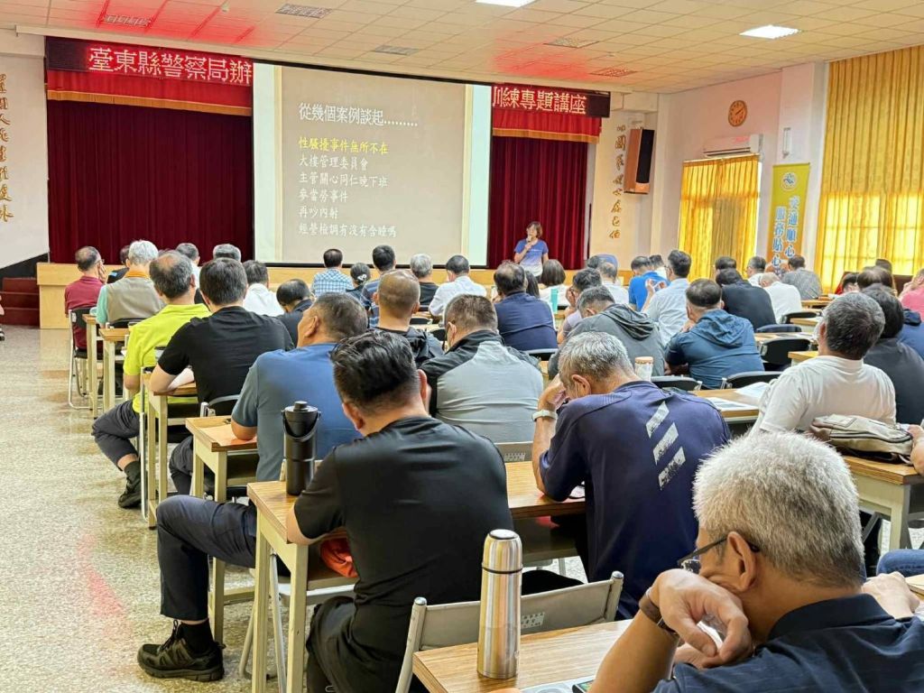 臺東縣警察局為強化職場性騷擾防治,於114年8月18日下午2時至5時舉辦「職場性騷擾防治專題講座」,特別邀請法律專家王如玄律師親臨授課。參加對象為警察機關主管及參與性騷擾申訴事件之處理、調查及決議人員,共計95人參加。此次講座旨在提升主管對性別平等與性騷擾議題的敏感度與認識,特別強調主管在預防、察覺及處理事件中的責任。
