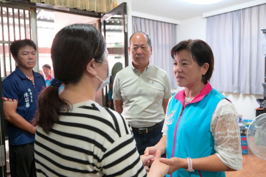 王先生因兩年前發病後病情惡化,導致身形消瘦,需仰賴胃造口灌食營養食品維持身體所需。由妻子獨力承擔照護責任,尚需扶養就讀國小的幼子,家中經濟壓力沉重。游淑貞鄉長陪同潘漢照董事長慰問並獻上慰問金、營養品、衛生紙、濕紙巾等物資,王太太看見鐵人鄉長到場,止不住的淚水與傷心一擁而上,頻頻謝謝游鄉長、潘董事長的幫助,讓自己在最艱難時刻得到最溫馨的援助與關懷。