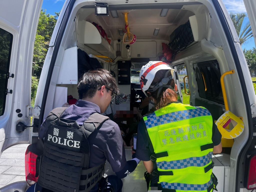 兩名員警隨即趕赴現場展開搜尋,並往公園方向地毯式搜尋。期間聽見河堤方向傳出微弱呼救聲,循聲尋找後驚見高姓老婦受困於草叢內,臉部朝下動彈不得。當時正值烈日高溫,婦人已遭曝曬近3小時,員警立刻協助翻身並以衣物遮頭、用自身身體擋陽降溫,直到救護人員到場送醫,所幸救回一命。