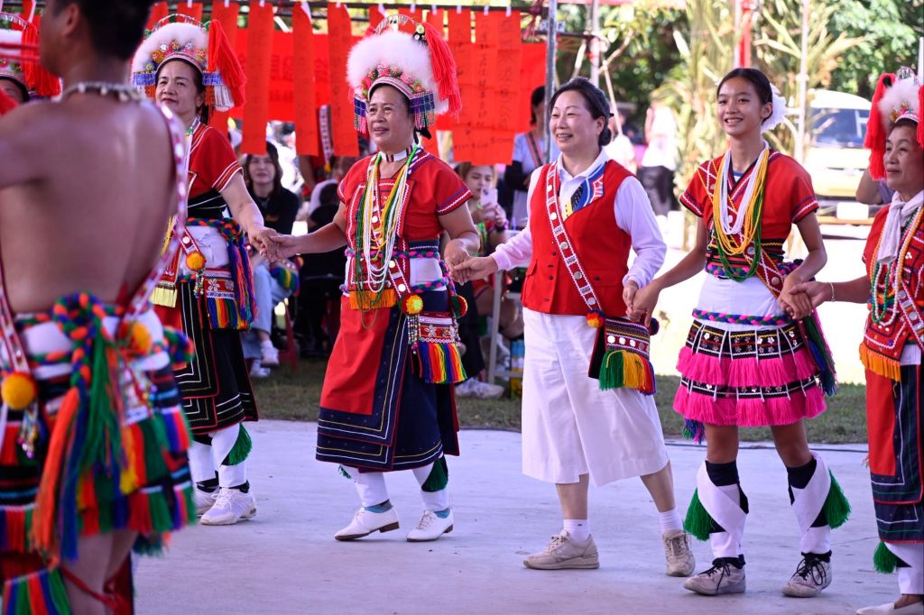 縣長徐榛蔚也親自與族人一同跳舞,在佳民村參與聯豐大會舞,在大德部落融入傳統樂舞,以真誠的投入感染現場氛圍,充分展現地方政府對原住民族文化的尊重與推動。