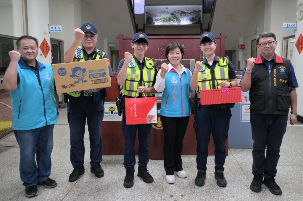 一名家住吉安鄉年逾八旬的老婦人,日前於花蓮太平洋南濱公園附近不慎跌倒受困,情況一度危急。所幸花蓮縣警察局吉安分局仁里派出所陳岳廷、林家儀兩位員警不畏烈日,立即展開地毯式搜索及時救援,使老婦人轉危為安。吉安鄉長游淑貞獲悉後,於昨(31)日偕同公所民政課長范蘇義特地前往仁里派出所慰勉,致贈「破案」茶與咖啡,感謝兩位員警的辛勞,也並同送上「一整箱乖乖」象徵治安交通萬事都乖乖,吉安警分局副分局長李振華亦全程陪同表達對同仁的肯定。