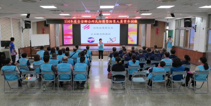 吉安鄉公所精實展開為期兩日的「114年度民防團隊常年訓練」課程,鄉長游淑貞特別規劃專業內容,安排鄉公所團隊、各村村長及平日協勤民力組織共同參訓。透過有效率的整編課程與專業講師的理論結合實務研討,加深防空避難、緊急救護、災害防治與災防應變等一級作為,凝聚全民國防教育與協勤民力在地效能,讓安全防護基本素養與精進知能落實守護鄰里,提早儲備複合式災害防治守護專業。
