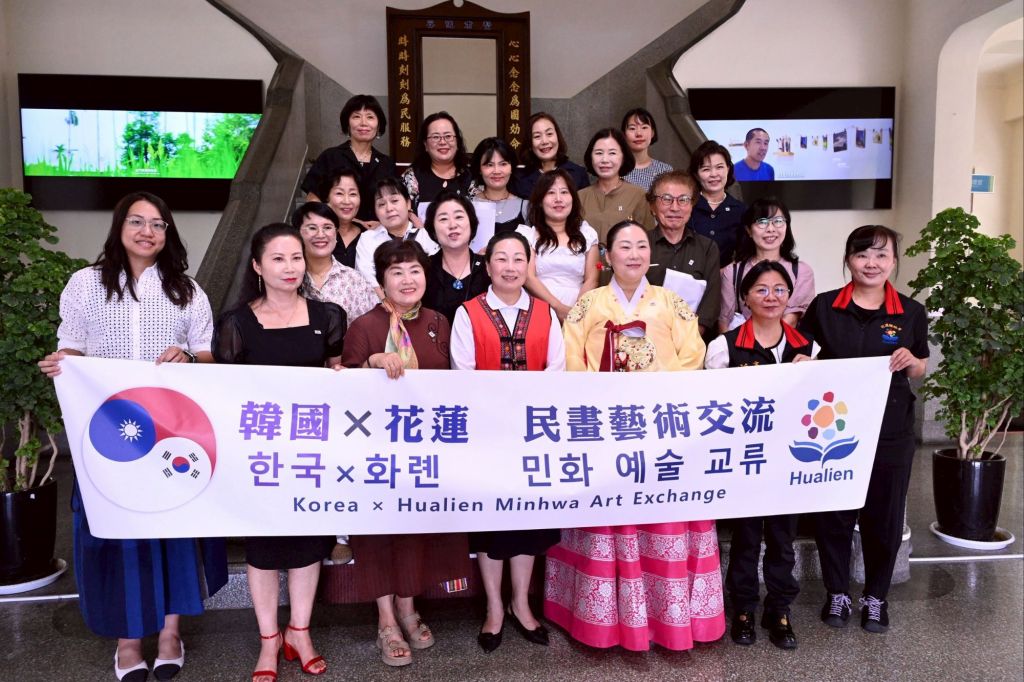 韓國社團法人文化事業振興會河丁華理事表示,感謝花蓮縣政府對於此次展覽活動的大力支持,此展以「傳統的現代再發現」為核心,展出韓國代表性的傳統彩繪民畫,包括韓國民畫藝術界重量級創作者趙晟美在內共45 位民畫藝術家與台灣 10 位藝術家,展出60件作品,並與東華大學藝術學院進行學術交流對談,開啟花蓮與韓國藝術交流新頁。藝托邦主理人紀婷云表示,「民畫」是融合生活經驗、信仰文化與想像力的藝術形式,近年風靡全球的 K-POP 世界觀「Demon Hunters(獵魔者)」中,獅子、喜鵲、老虎與劍術等東方符號,與民畫「驅邪」、「祈福」、「十長生」等意象相呼應,期盼藉由本展讓花蓮民眾認識韓國傳統的原型。