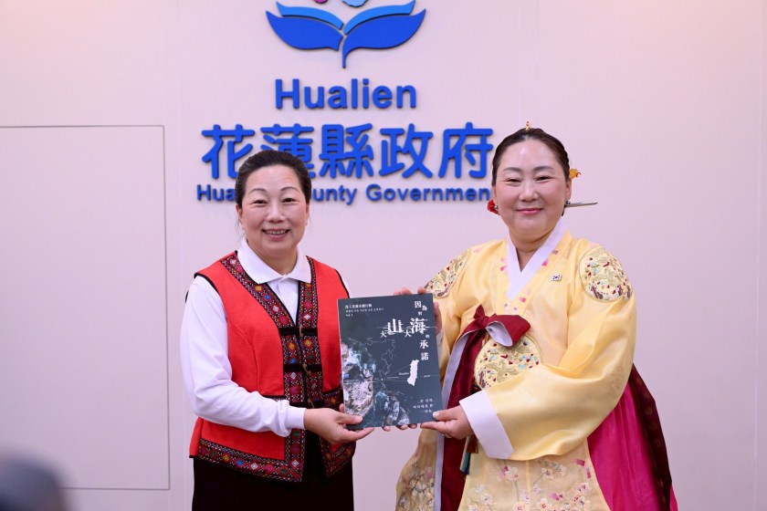 韓國社團法人文化事業振興會河丁華理事於日前率團蒞臨花蓮,即將展開為期20日的「2025 台灣.韓國藝術家交流展」,此團於今(8)日赴縣府拜會,花蓮縣長徐榛蔚率縣府團隊親自接見,並致贈《因為對大山大海的承諾 vol.2》中韓版予來訪貴賓,雙方並就跨國文化藝術交流展開晤談,深化雙方情誼。