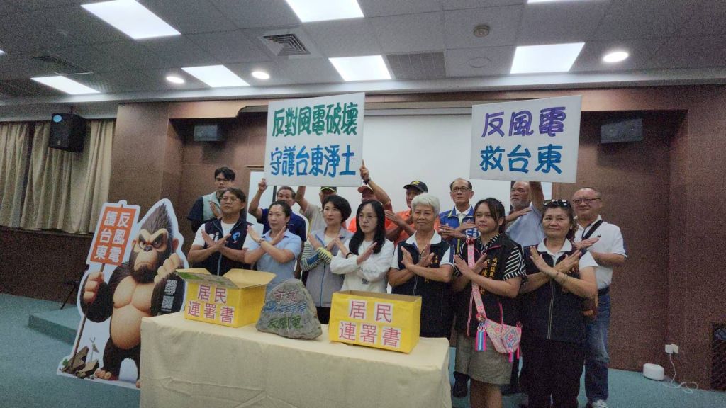 東海岸反風電自救會聯盟(南迴自救會、長濱成功自救會)今(12)日於台東縣政府與縣府共同召開聯合記者會,正式提出近5000份具名連署,嚴正要求台亞風能公司撤回「東風」、「東成」兩項風機開發計畫。此計畫共計 58 座大型陸域風機,範圍涵蓋長濱、成功、太麻里、大武與達仁,居民憂心將對環境、生態、文化與生活造成不可逆的衝擊。