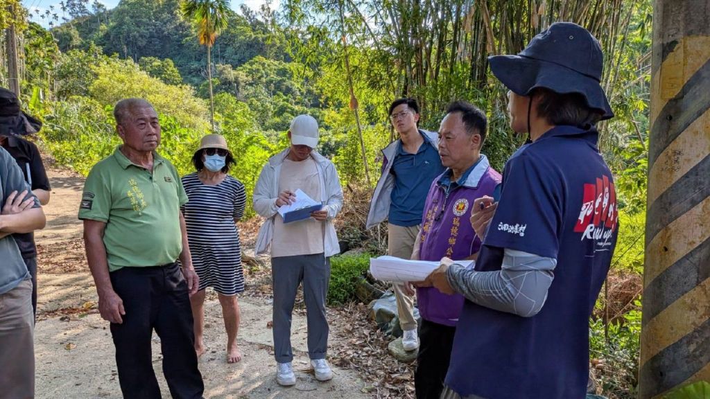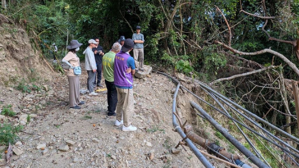 鄉長吳萬德率公所團隊,於今(12)日下午,會同農業部農村發展及水土保持署等一行人,前往各路段勘查,針對受損情形、復建需求及工程規劃進行實地討論與專業評估。