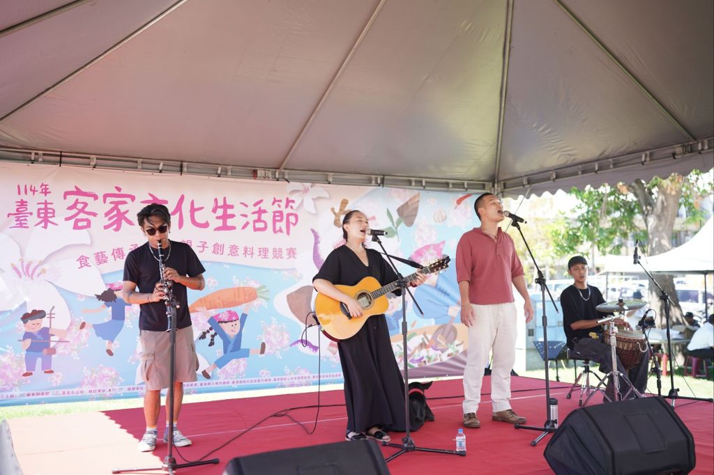 除料理競賽外,舞台節目同樣精采,有臺東市立幼兒園小朋友以可愛活潑的舞蹈揭開序幕,小丑爸爸帶來氣球魔術逗趣演出,饒棣華獻唱四首客家歌曲;鐵道村晨運社、鯉魚山懷興手語研習社、花木蘭舞蹈團及瑞源客家韻藝團等在地團體也熱情演出。壓軸由臺東客家福音協進會獻唱詩歌與民謠,為活動畫下溫馨句點。