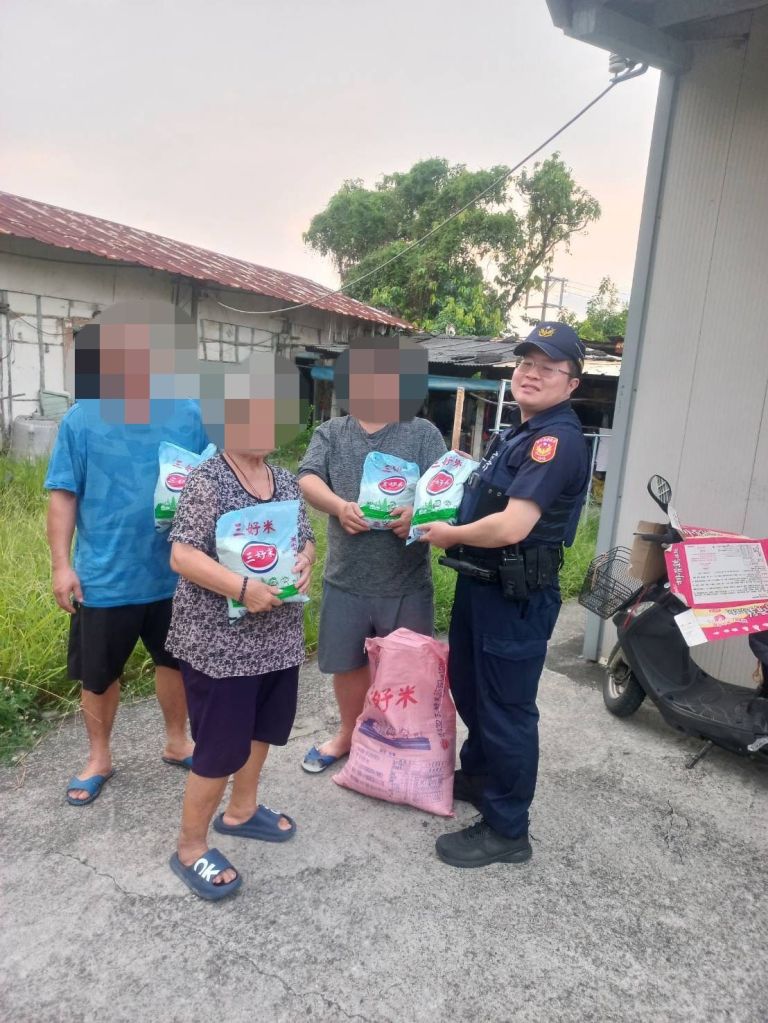 雲林縣警察局斗南分局新光派出所員警透過每日之巡邏、勤區查察等勤務,主動探視及關懷轄內單親家庭、獨居老人及低收入戶等弱勢對象,於中元節前夕與位在斗南鎮田頭里的濟天宮合作,發放白米給弱勢家庭及獨居年長者,期盼藉由此次活動拋磚引玉,讓更多社會資源投入關懷行列,傳遞社會的溫情。