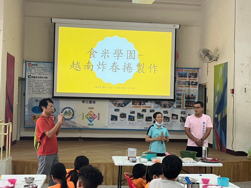 從再生稻到越南春捲,父母雙雙成為講師,孩子在田園與廚房之間體驗多元文化。114年9月15日上午10時20分至12時,大禹國小校園裡舉辦了一場別開生面的「各族群米食文化」課程。繼上次由學生父親陳文進先生分享「再生稻」的耕作經驗後,這次輪到學生的母親—來自越南的新住民吳氏秋女士,帶來她的家鄉味:越南春捲。