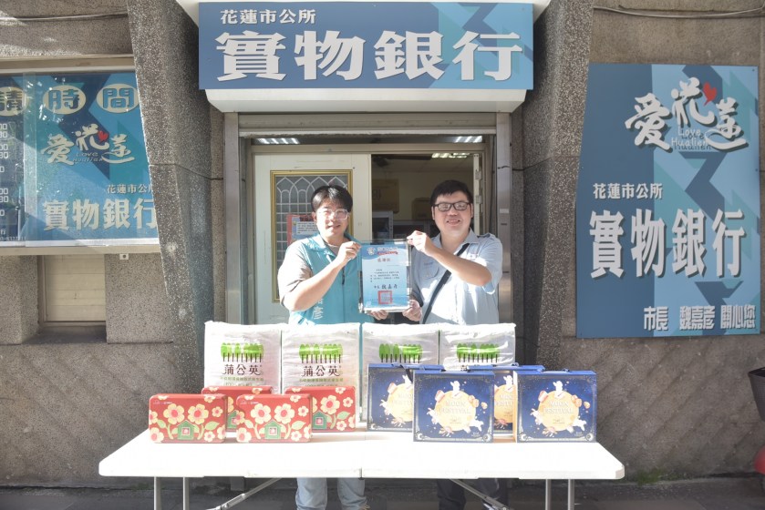 花蓮市公所實物銀行再獲善心人士捐贈,台灣中油馬太鞍加油站站長陳建丞特別採購社福團體的月餅禮盒捐予實物銀行,讓花蓮市公所能夠將這份愛心傳遞給需要幫助的弱勢家庭。市長魏嘉彥到場接受並頒贈感謝狀,謝謝有這麼多充滿愛心的公司行號、社會團體及個人能響應社會公益活動,相信實物銀行可以幫助到更多弱勢朋友。
