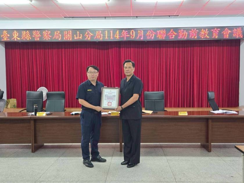 臺東縣警察局關山分局於昨(17)日14時30分召開9月份聯合勤教,特別邀請居住在臺東縣延平鄉,於今(114)年7月16日自宜蘭縣政府警察局蘇澳分局澳花派出所榮退的布農族所長胡傳明蒞臨,與全體同仁分享從警40年的經驗與心得。胡所長一抵達會場,即受到分局長龔士哲及與會40多位學弟妹的熱烈歡迎,場面溫馨且具啟發性。