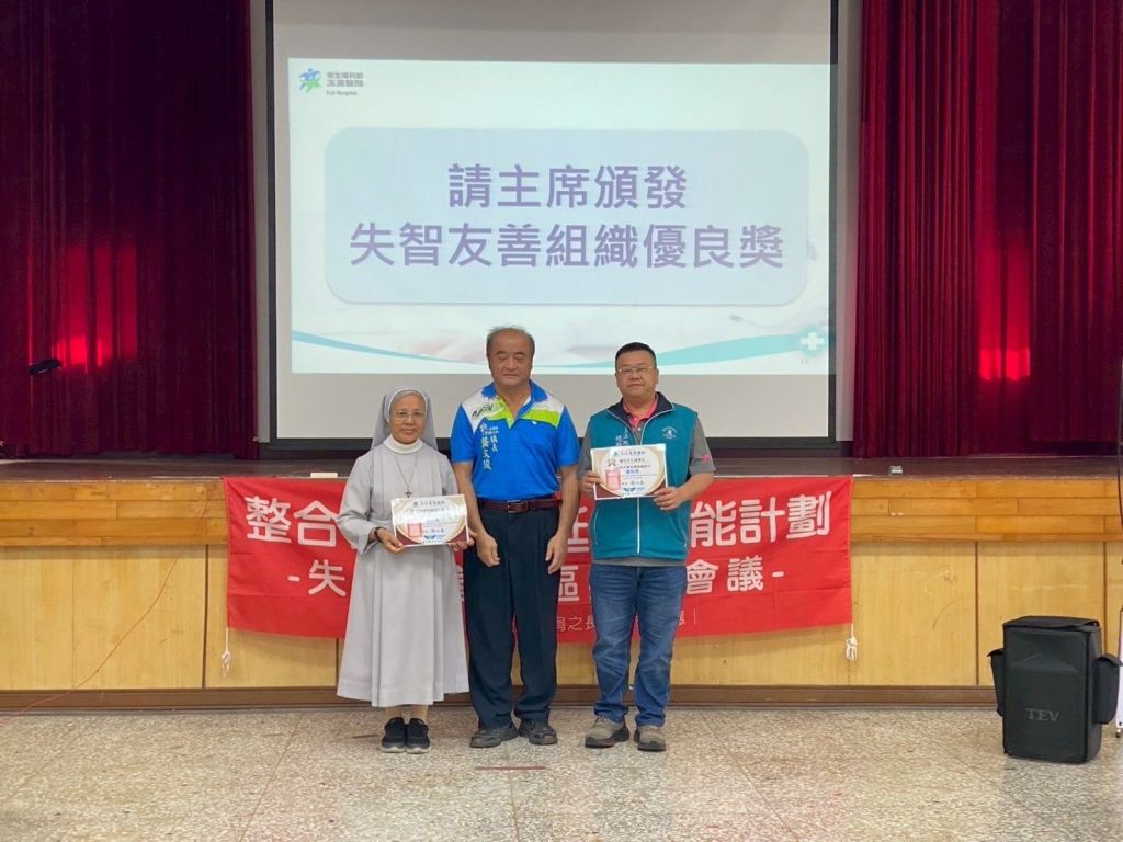 會議議程中,玉里醫院頒發「失智友善組織推行優良獎」獎狀,表揚鐵份、下德武、苓雅、春日、泰林、樂合、松浦等文化健康站,以及玉溪地區農會與全家便利商店玉里玉溪店等單位,感謝他們積極營造友善環境,讓失智者能安心參與社區生活。醫院也頒發「失智友善天使獎」,表揚王春菊、邱佩菁、陳怡璇、曾美珠、吳珍琴、林晉暉、黃秋玉、黃秋華、徐李妹與范運森等十位天使。他們在社區中主動關懷失智者及其家庭,展現同理與行動力,主動提供協助,堪為典範。